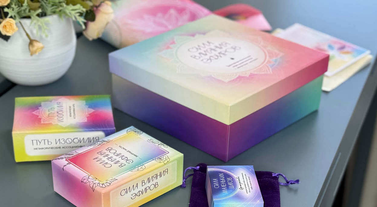 ✦ Тканевое игровое поле (50*50 см) ✦ Карточки «Капельки» для работы со смесями (18 карт) ✦ Бланки для диагностики 4 шт. + pdf файл для печати ✦ Путеводитель по игре для участников «Мой ароматный путь» (pdf файл для печати) ✦ Наклейки для набора масел к игре (цифры и наименования масел, смесей) ✦ Наклейки для роллеров (20 шт) ✦ Брендированная коробка для игры